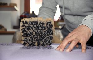 در این نوع چاپ یک مهر ایجاد می شود، و سپس از آن برای چاپ روی پارچه استفاده می شود. این کار شبیه به ساختن تمبر سیب زمینی در دوران کودکی، برای ایجاد نقاشی های زیبا است.طرح شما روی مهر حکاکی می شود، سپس در جوهر فرو می رود و با فشار یکنواخت، جوهر از روی مهر بر روی پارچه منتقل می شود. سطح جزئیاتی که می توانید از چاپ تمبر به دست آورید محدود است، بنابراین برای طرح های پیچیده تر مناسب نیست.